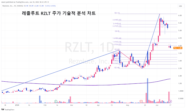 | 레졸루트 RZLT 주가 기술적 분석 차트 |